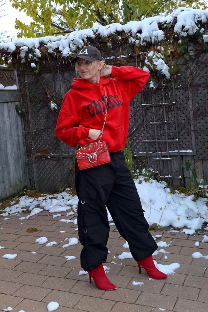 This combination might sound weird but trust me on this one. Wide-leg cargo pants with an oversized hoodie and stiletto boots is such a vibe.